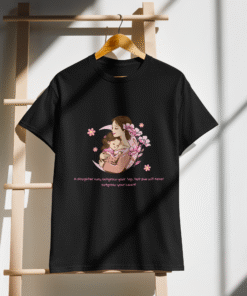 Celebrate the forever bond with the A Daughter May Outgrow Your Lap Black T-Shirt from the Motherhood Magic Collection. Featuring the heartfelt quote, “A daughter may outgrow your lap, but she will never outgrow your heart,” this tee captures the essence of motherhood in its purest form. Printed on soft, breathable black cotton, it’s ideal for everyday wear, gifting, or simply keeping your daughter close—no matter her age.