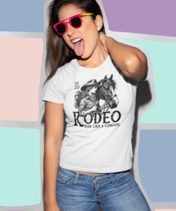 Channel your inner cowgirl with the Rodeo Ride Like a Cowgirl White T-Shirt. Designed for those who love boots, boldness, and the thrill of the ride, this tee features a spirited western graphic that celebrates fierce femininity. Crafted from soft, durable cotton, it’s perfect for rodeos, country concerts, or everyday adventures with a touch of the wild west. Yeehaw in style!