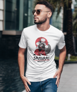 Design: Bold “Samurai Warrior” graphic or illustration (design-dependent)