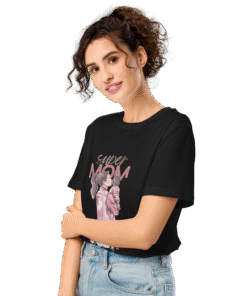 Celebrate your bond in style with the Super Mom & Baby Floral Black T-Shirt from the Motherhood Magic Collection. This elegant design features a fashionable mom and baby duo, floral detailing, and a bold “Super MOM” header—capturing the fierce love and beauty of motherhood. Made from soft black cotton, this tee is perfect for photo days, coffee runs, or simply loving your role out loud.